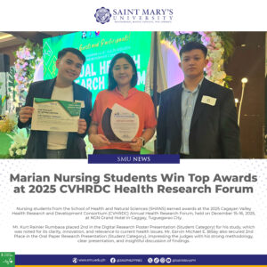 Marian Nursing Students Win Top Awards at 2025 CVHRDC Health Research Forum Nursing students from the School of Health and Natural Sciences (SHANS) earned awards at the 2025 Cagayan Valley Health Research and Development Consortium (CVHRDC) Annual Health Research Forum, ...