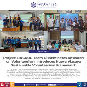 Project LINGKOD Team Disseminates Research on Volunteerism, Introduces Nueva Vizcaya Sustainable Volunteerism Framework The Project Local Initiatives for Normative Governance and Kapwa-Driven Organizing for Development (LINGKOD) aims to propose a volunteerism framework for the Province of Nueva Vizcaya. Recognizing the ...
