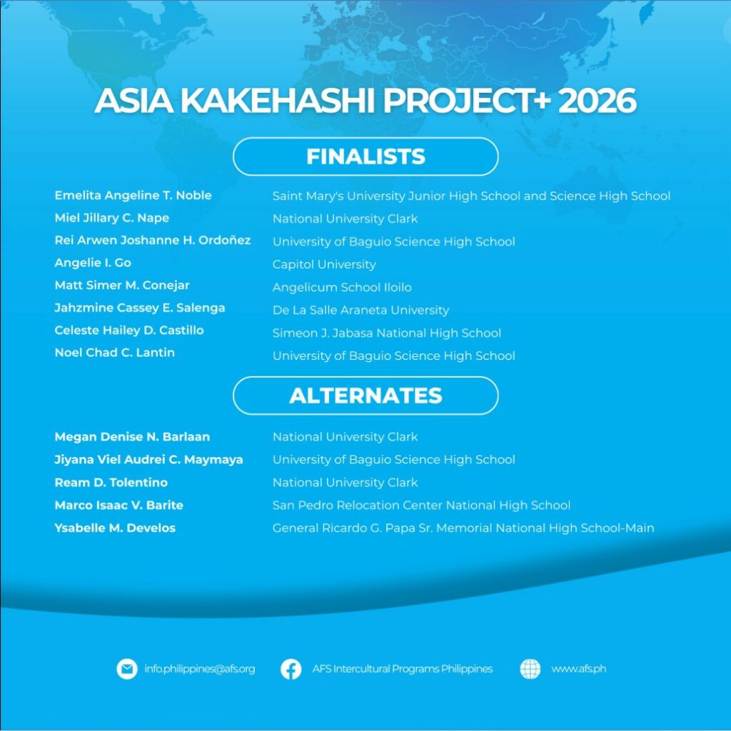 Saint Mary’s University is excited to announce that Emelita Angeline T. Noble, an incoming Grade 10 student, has earned a spot in the esteemed Asia KAKEHASHI Project – AFS Philippines, which builds bridges between Japanese and Asian high school students, focusing on culture, language, and mutual understanding. This achievement comes after a demanding nationwide selection process that included candidates from across the Philippines. Emy is among the select few chosen to participate in this fully funded cultural exchange scholarship, sponsored by Japan’s Ministry of Education, Culture, Sports, Science and Technology (MEXT). The program provides exceptional high school students from Asia and other selected regions with the chance to study and live in Japan for one semester. Participants will attend a Japanese high school and will either stay with a host family or in a dormitory.