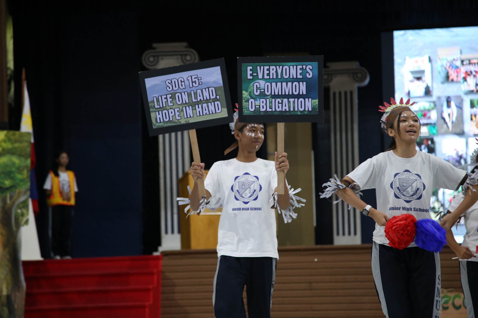 Grade 7 students performed a call to preserve all forms of life, showcasing SDG 14: Life Below Water and SDG 15: Life on Land. With the use of vibrant colors, their performances stood out, accompanied by cheers from their seniors.