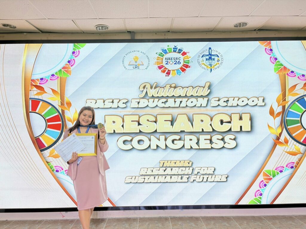 A faculty member from Senior High School, Mrs. Gleddy Mae V. La-Corda brought pride to Saint Mary’s University after being named Champion (Best Research Paper) in the Professional Category during the National Basic Education Schools Research Congress 2026, held on February 27-28 in Tuguegarao City.