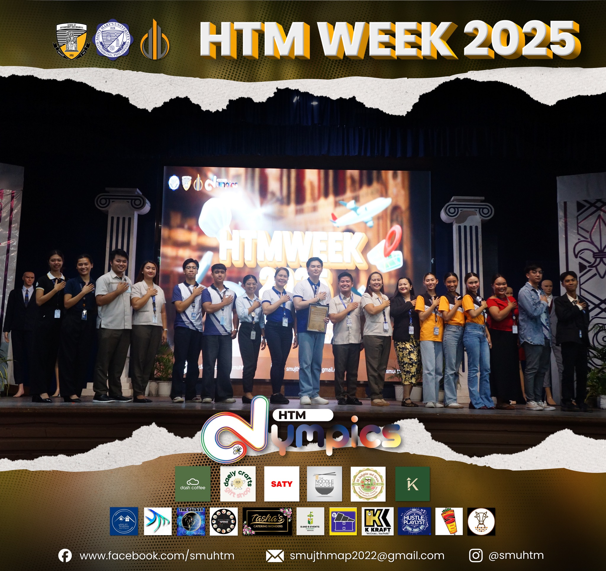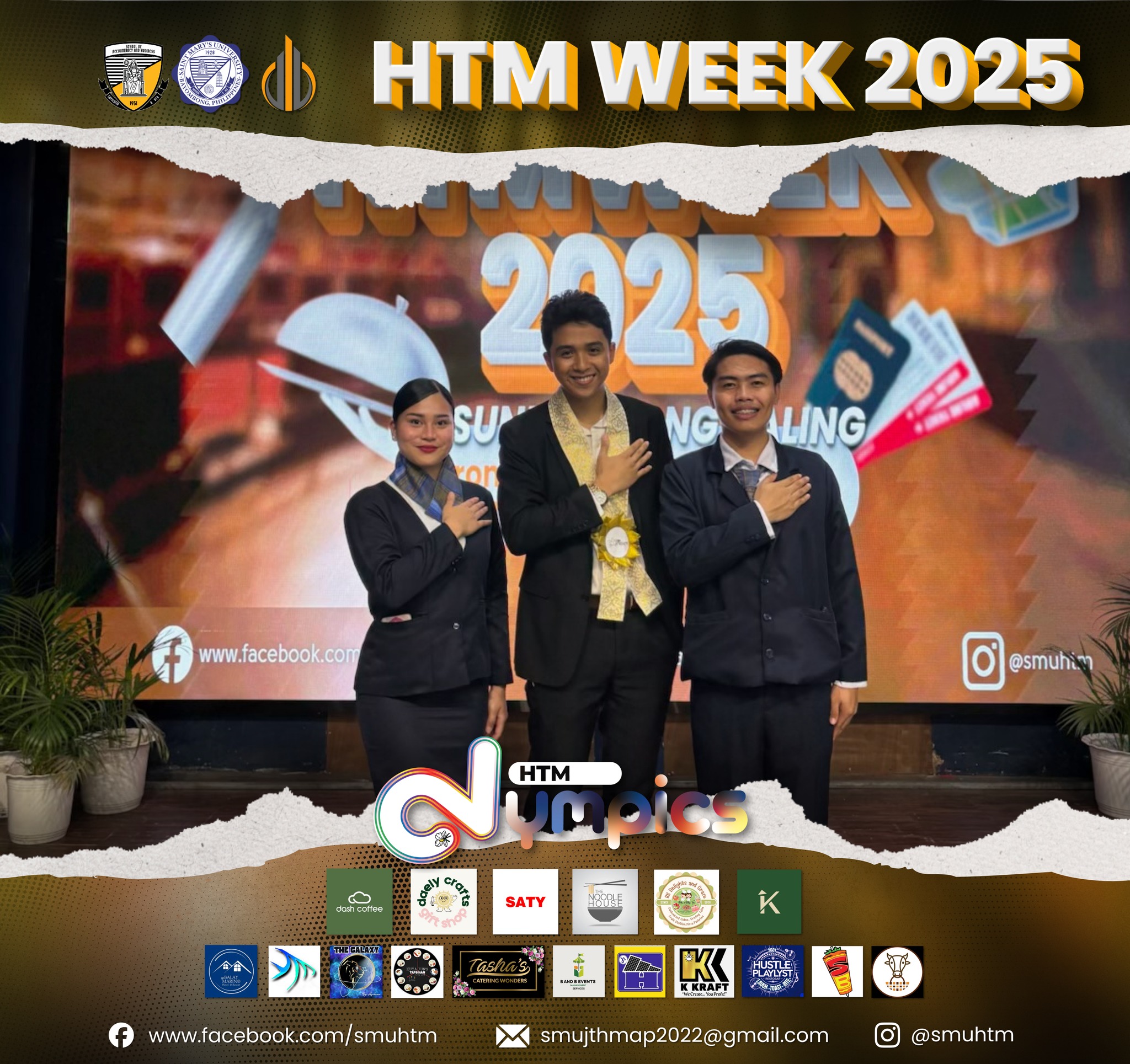 The week of academic intensity and professional competition concluded with the official awarding of winners on the last day at the HTM Socialization Night, which featured a black and white theme for elegance and class. This final event celebrated the students’ dedication, artistry, and collective success, closing a remarkable HTM Week dedicated to inspiring, innovating, and influencing the future of hospitality and tourism.